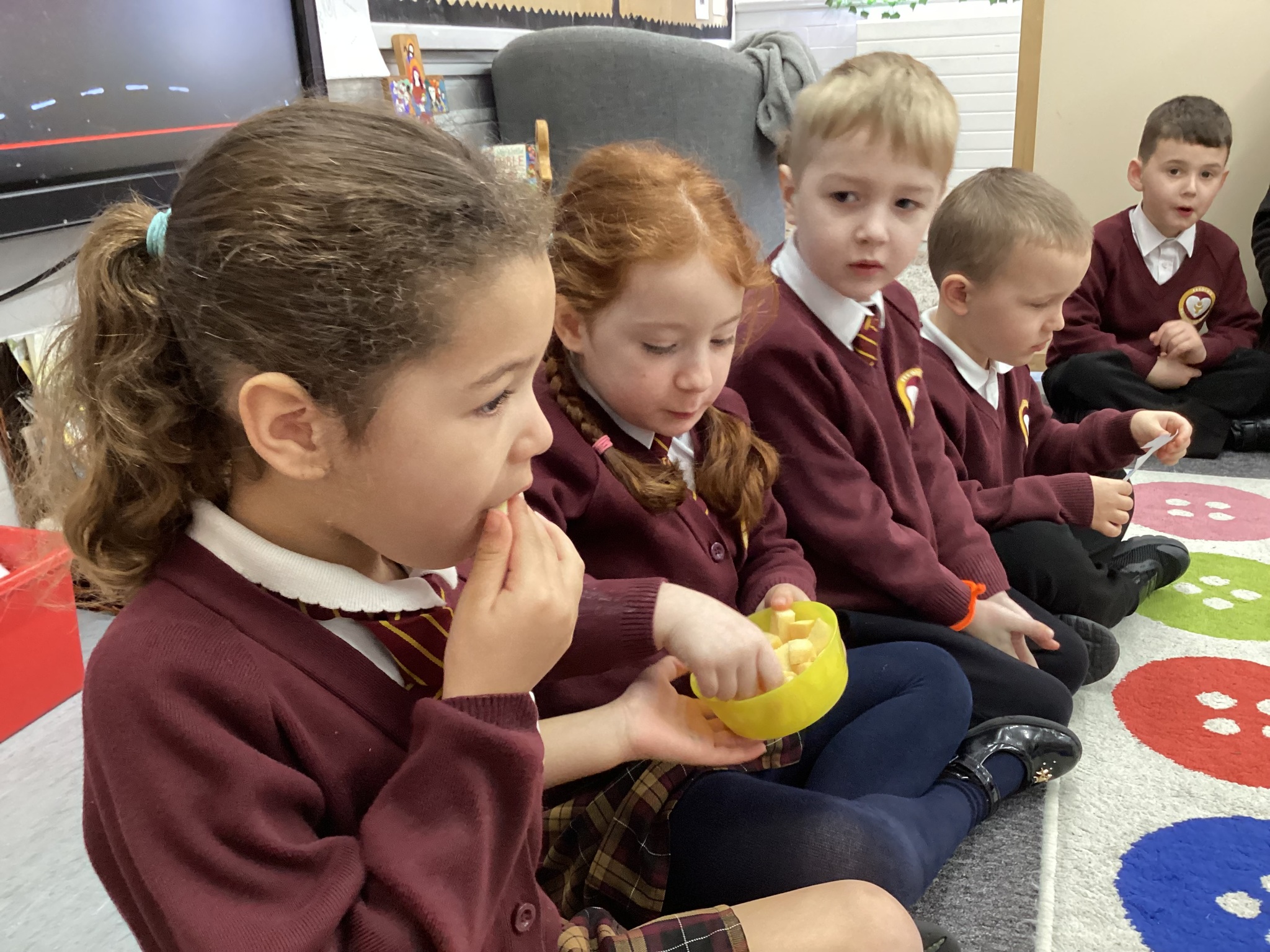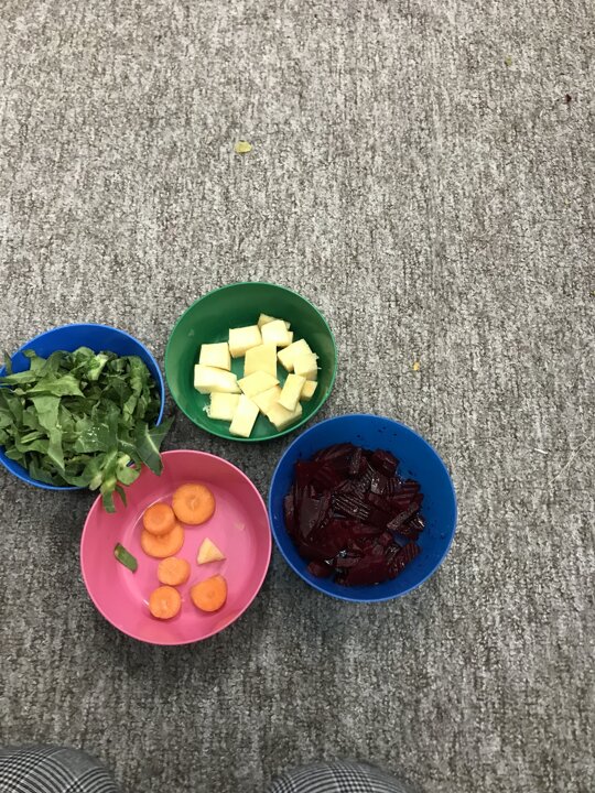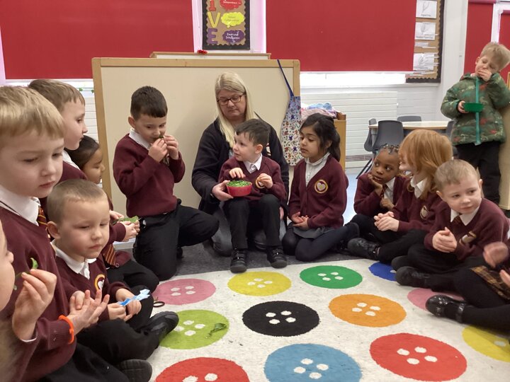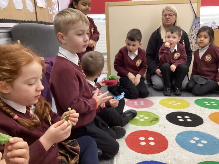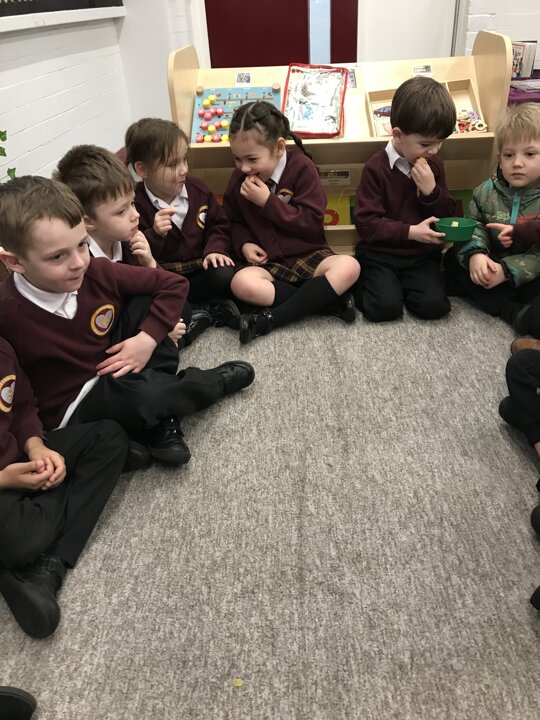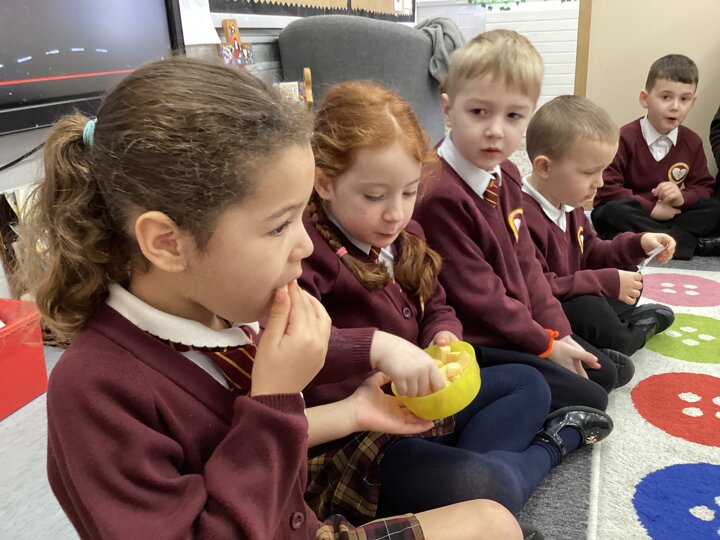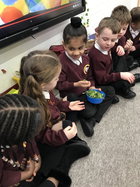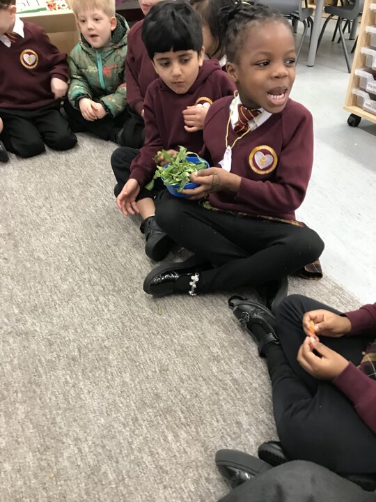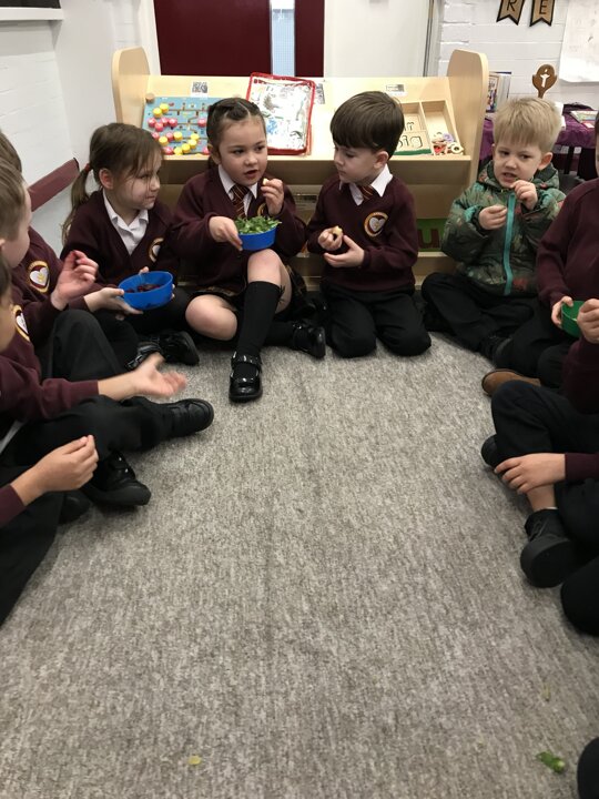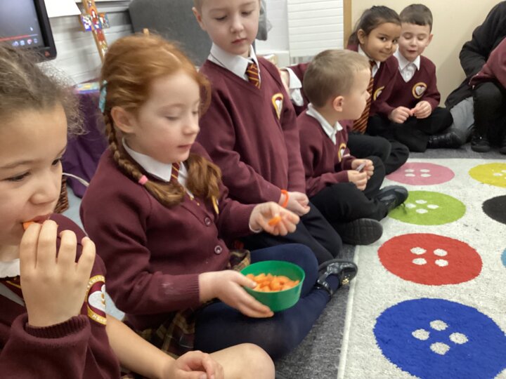 As part of our Literacy lesson related to our book Oliver’s Vegetables the children tried different vegetables. The children used all of their senses when trying the vegetables. We looked, smelt and tasted them. We used beetroot, turnip, carrot and cabbage. Once the children had tried all the vegetables we used our literacy books and described what they looked like and what they tasted like.