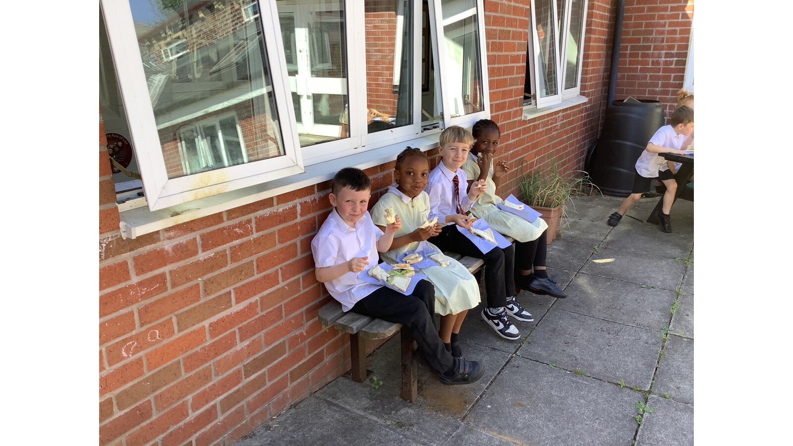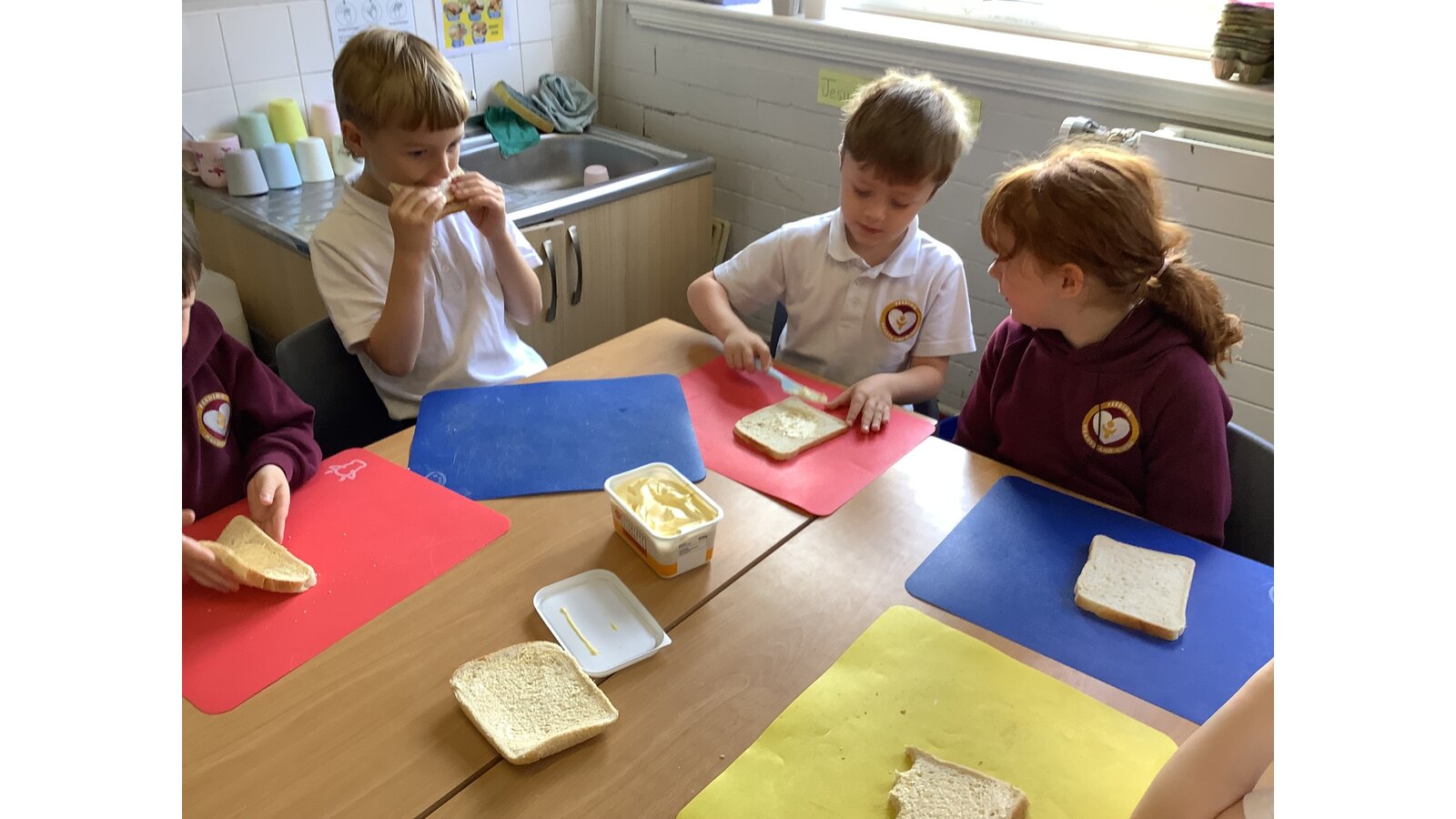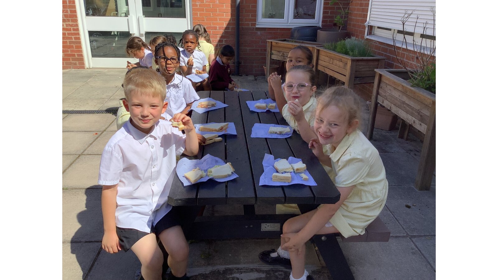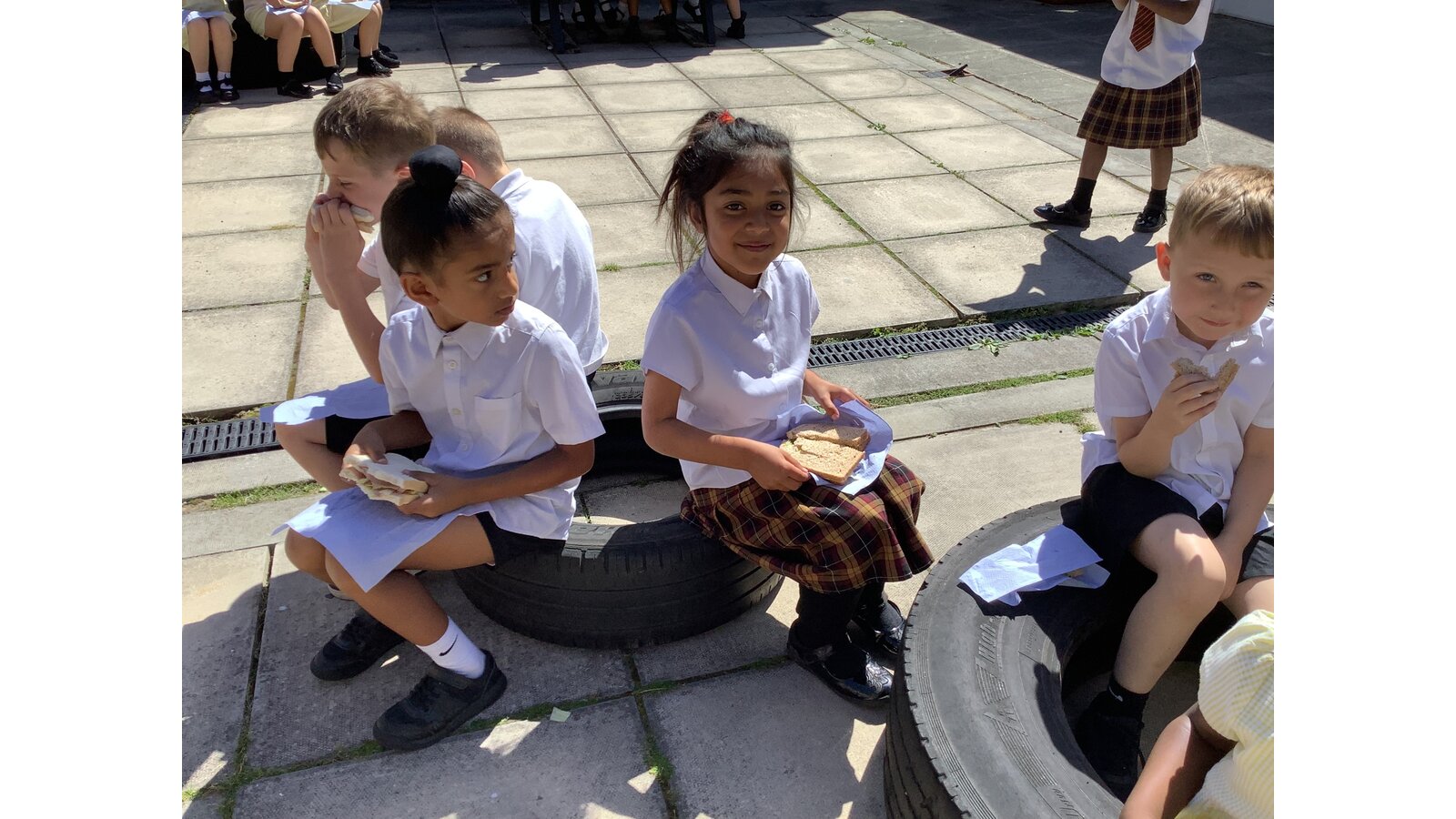 We have been making sandwiches in DT this half term. We have chopped, sliced, grated and spread. Then we enjoyed our sandwiches in the sunshine with Year 1 Blessed.