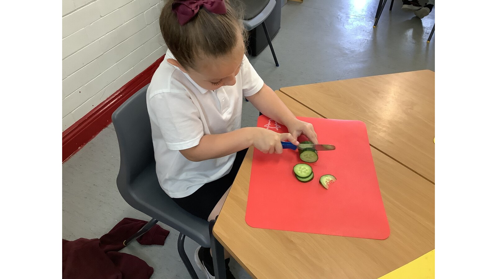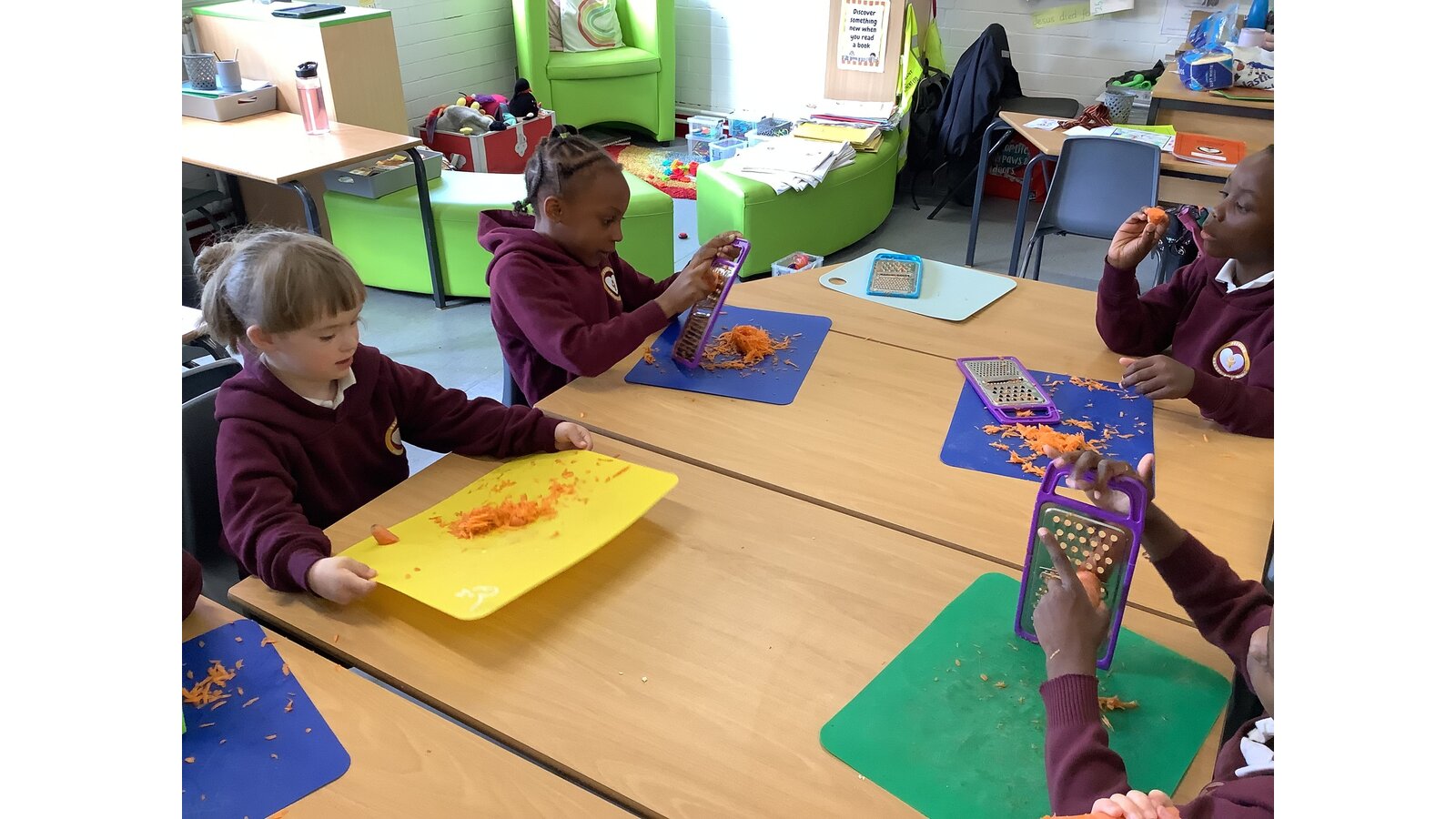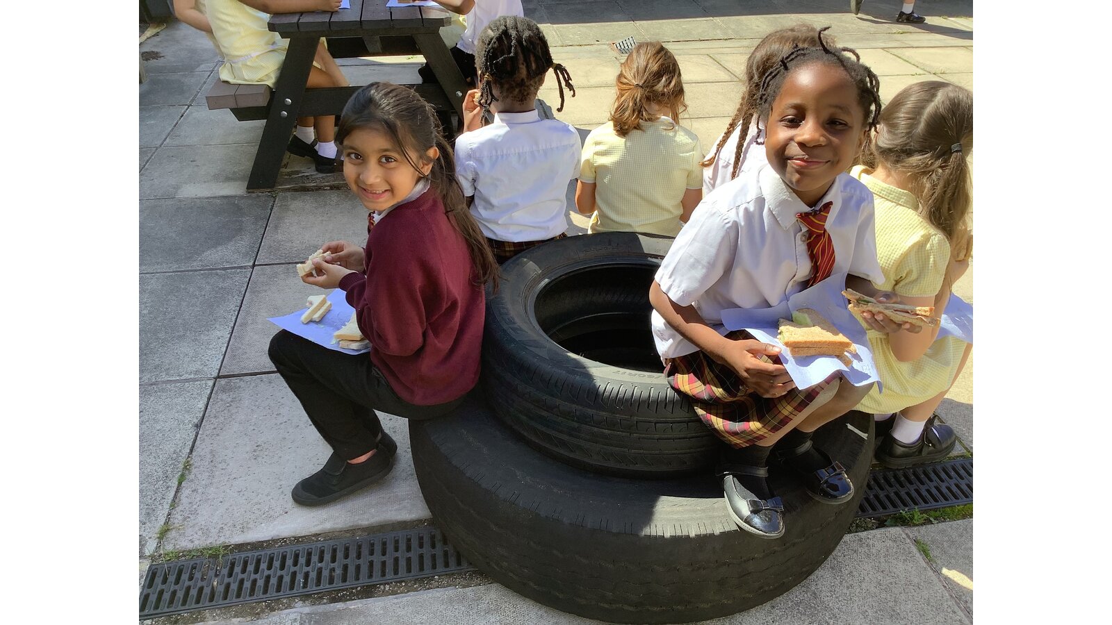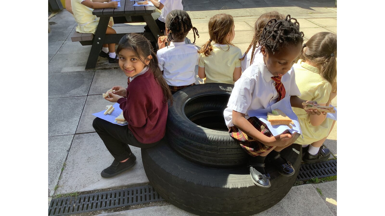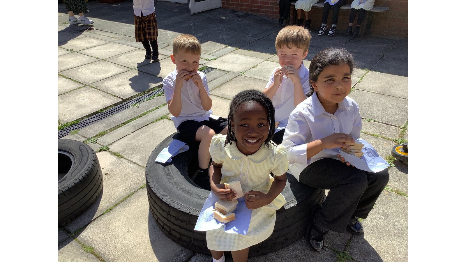 We have been making sandwiches in DT this half term. We have chopped, sliced, grated and spread. Then we enjoyed our sandwiches in the sunshine with Year 1 Blessed.