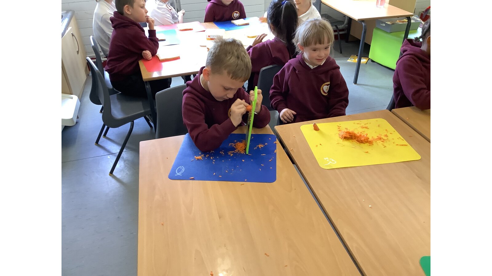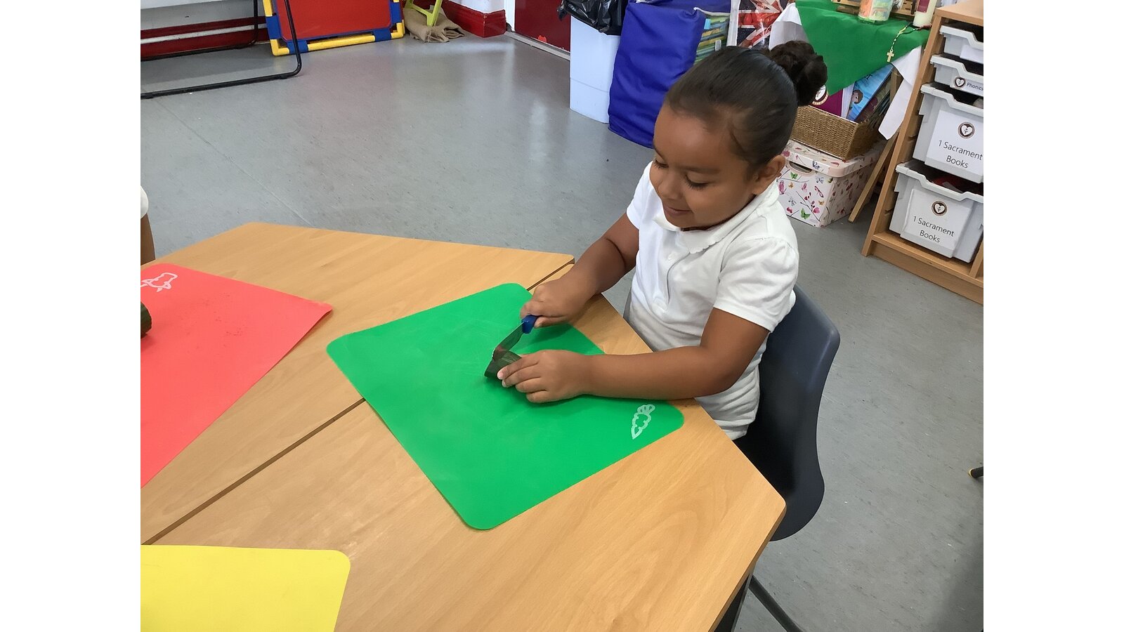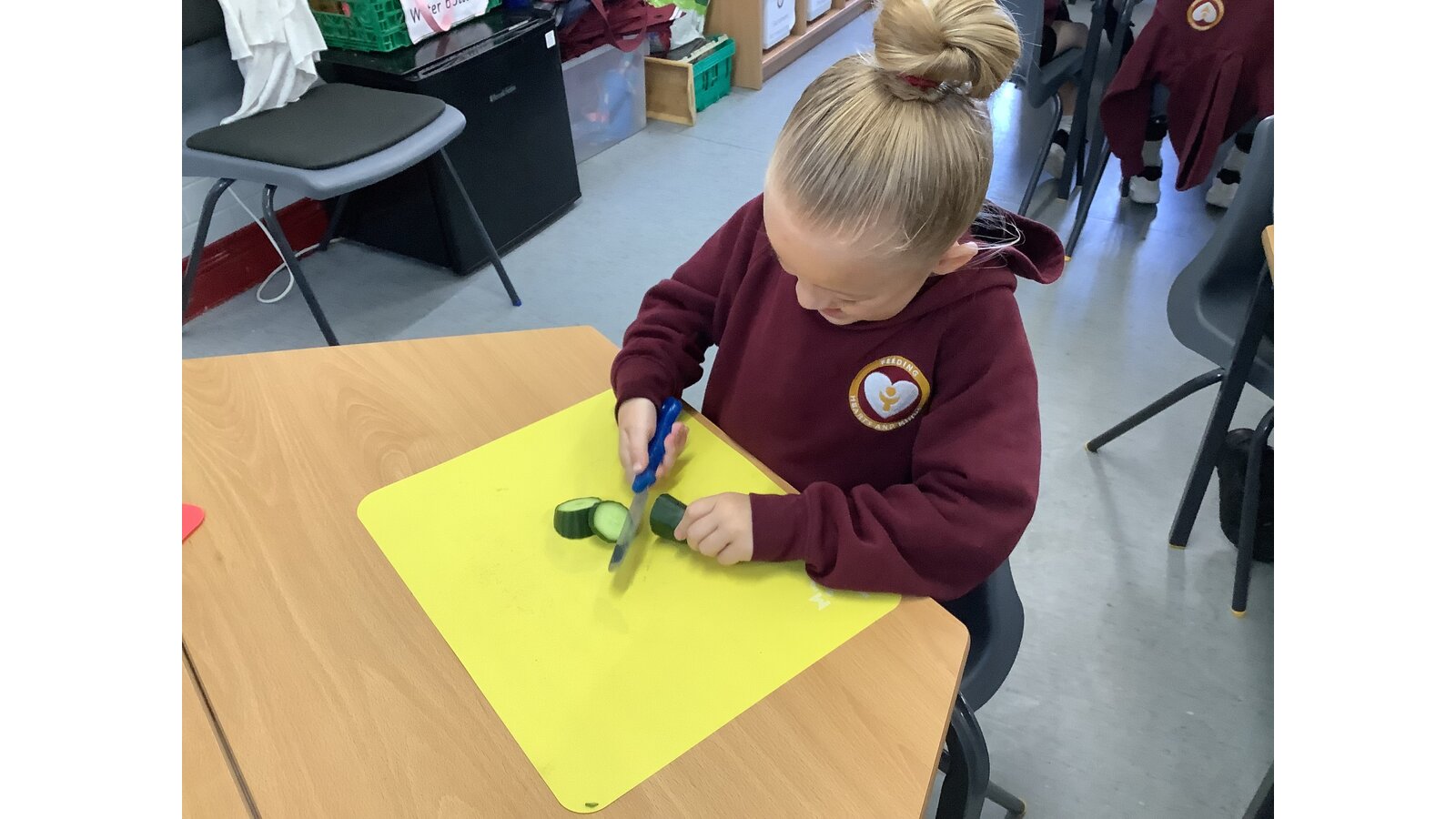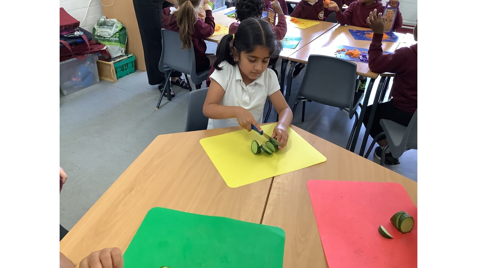 We have been making sandwiches in DT this half term. We have chopped, sliced, grated and spread. Then we enjoyed our sandwiches in the sunshine with Year 1 Blessed.