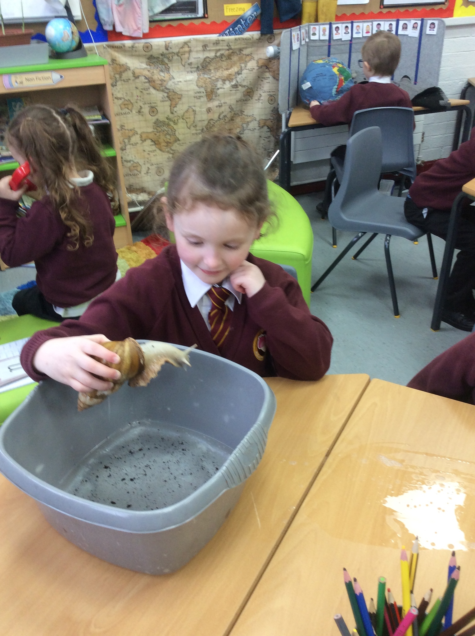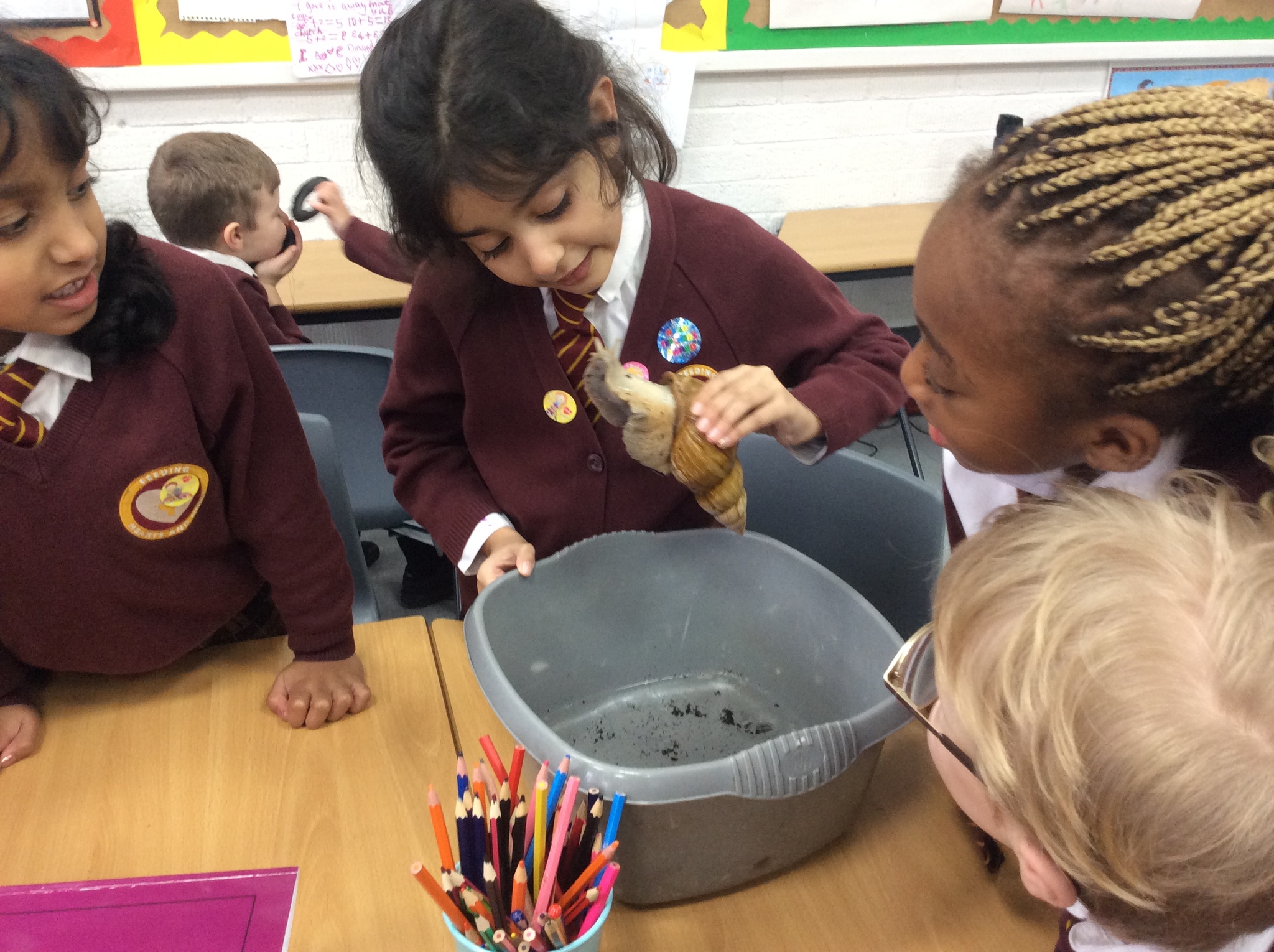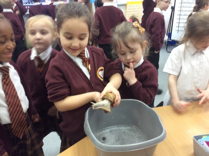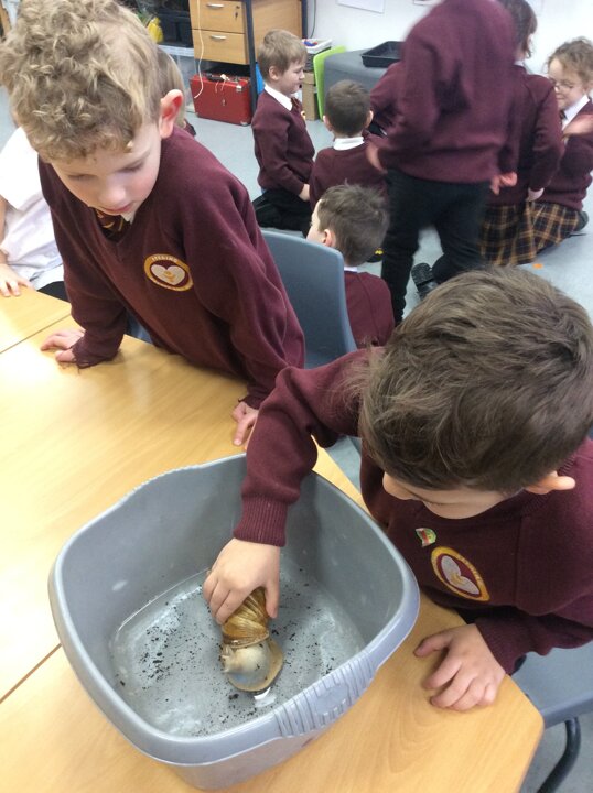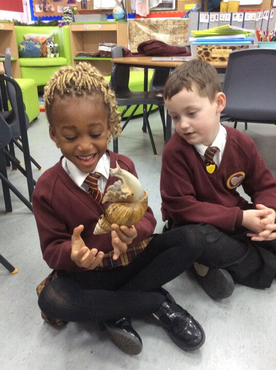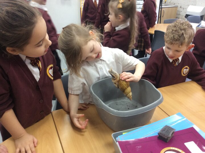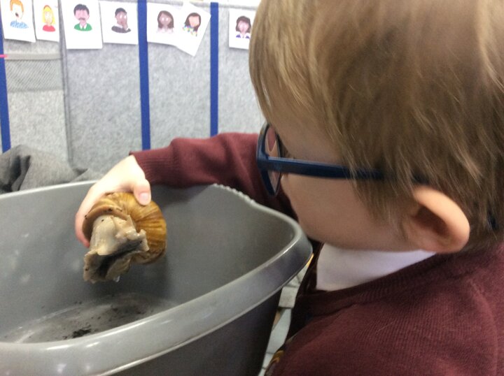 Last week our Year 1 children met their new class pet, 'Sid' the African Land snail has moved in and is settling nicely into his new class. The children were asked to find his eyes and mouth! We even gave him/her/them a bath!