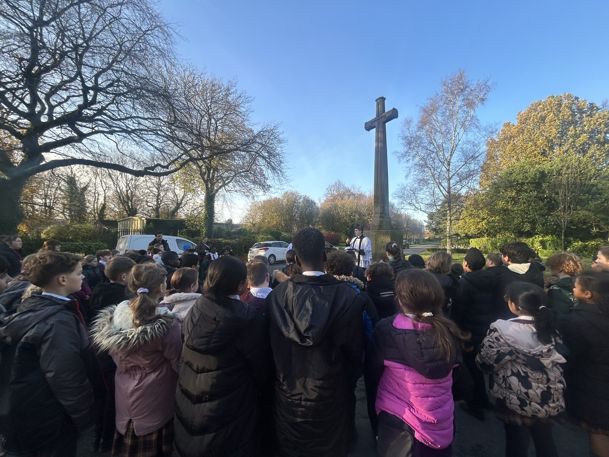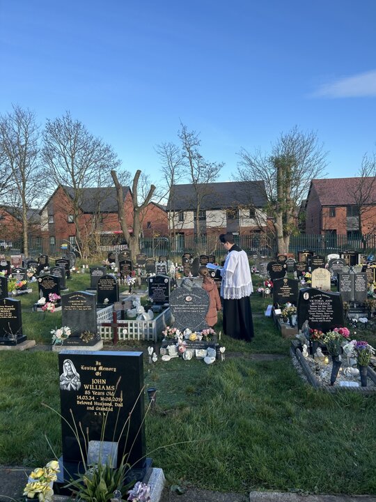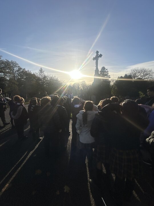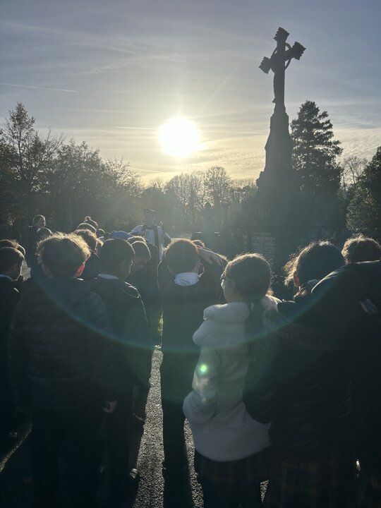 Yesterday, Year Five went to the graves to bless them with the Bishop. We said prayers and listened to the service. We remembered all the people that died for us during the wars. We even showed some of our families graves and the bishop blessed them with us using the holy water. All of Year Five were very respectful and made our school proud!